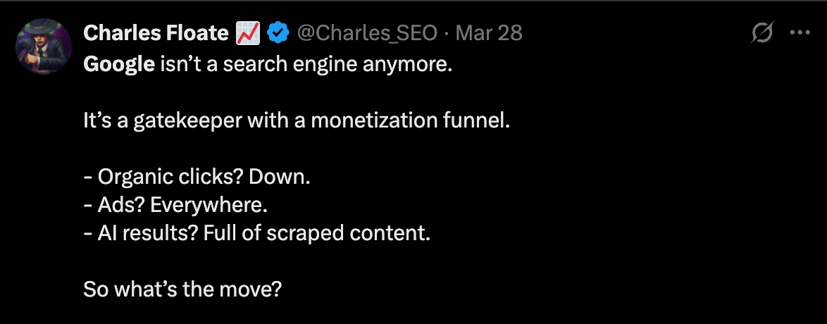 This is why SEO types on X constantly claim Google hates affiliates. It doesn’t HATE affiliates, it just hates pretty much anything and everything these days.