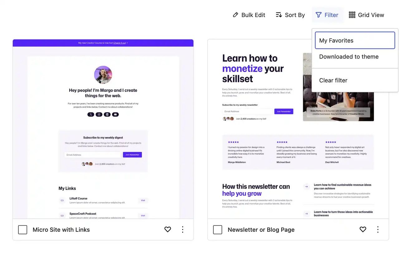 I use Ollie because it comes with done-for-you designs for everything from CTAs to pages and posts and, of course, landing pages.